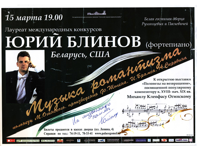 «Он покорил Америку», - так говорят о пианисте Юрии Блинове - первом белорусе, который выступал с сольным концертом в знаменитом Карнеги-Холл. Количество стран на его гастрольной карте приближается к сорока. Виртуозный исполнитель исколесил вдоль и поперек Европу, ему рукоплескали даже в далекой Японии. Теперь Блинов может добавить в свою биографию еще один факт – дебют на «Январских музыкальных вечерах».