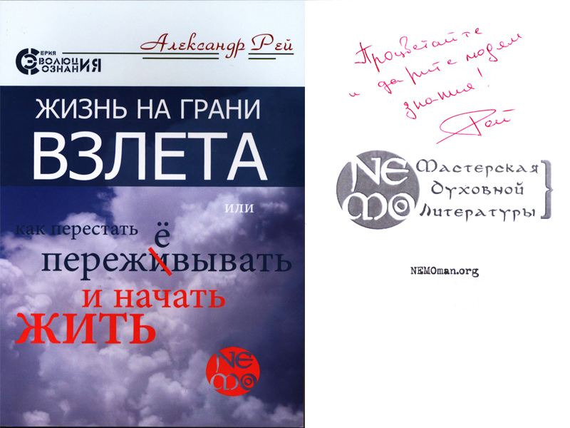 Первая книга Александра Рея «Жизнь на грани взлета, или как перестать пережевывать и начать жить» вышла в конце 2011 года. Являясь методическим пособием по самостоятельной работе с психологическими и духовными проблемами, книга быстро завоевала популярность. Откровенная, иногда грубая манера автора обращаться к своему читателю напрямую и использование методик на стыке психологии и эзотерики, стали визитной карточкой писателя.