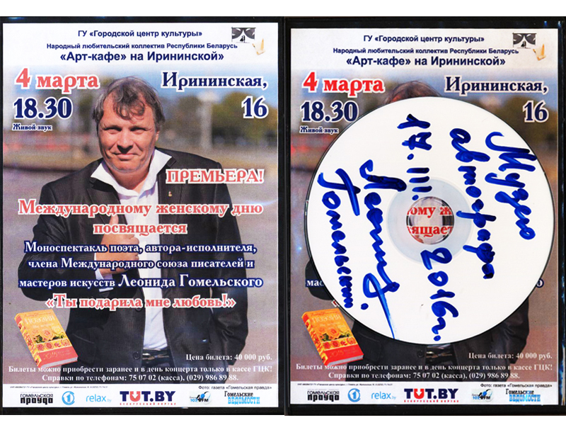 Леонид Гомельский –поэт, автор-исполнитель, член Международного союза писателей и мастеров искусств. Заслуженный артист всебелорусского объединенного казачества, походный атаман Гомельского округа.