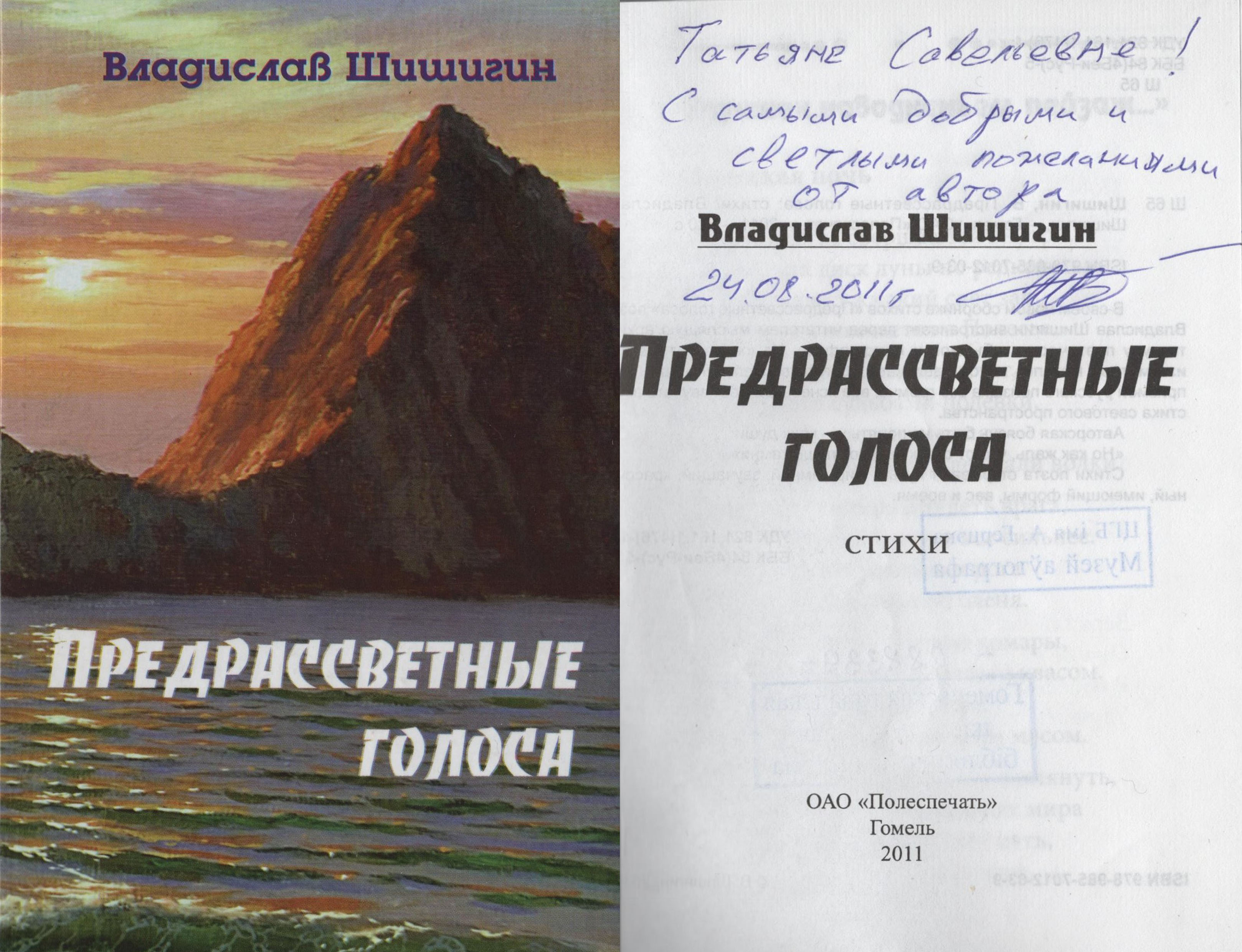 «Татьяне Савельевне! С самыми добрыми и светлыми пожеланиями от автора 24.08.2011г. /подпись/».