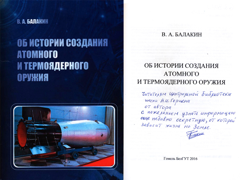 «Читателям центральной библиотеки имени А.И. Герцена от автора с пожеланием узнать информацию еще недавно секретную, от которой зависит жизнь на Земле. Подпись»