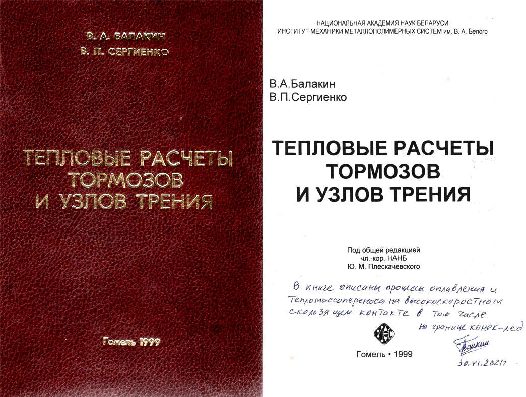В книге описаны процессы оплавления и тепломассопереноса на высокоскоростном скользящем контакте в том числе на границе конек-лед /Подпись/ 30.VI.2021 г.