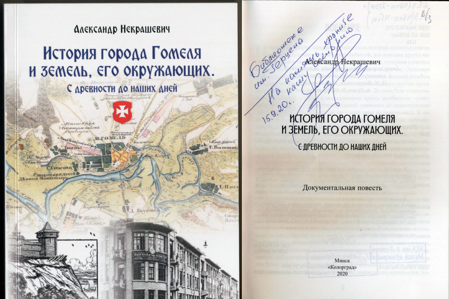 Книга с автографом автора была подарена Александром Некрашевичем на презентации книги «История города Гомеля и земель, его окружающих. С древности до наших дней» в центральной городской библиотеке им. А. И. Герцена.