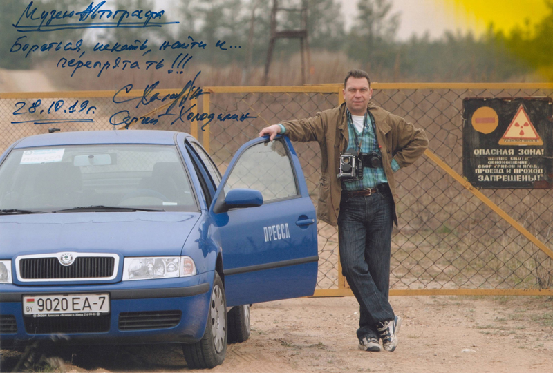 Сергей Холодилин подарил Музею автографа свои фотоработы: «Александр Исачёв на открытии своей первой и единственной выставки в Речице» (2017), «Чернобыльское эхо» (2019), «Опасная зона» (2019).