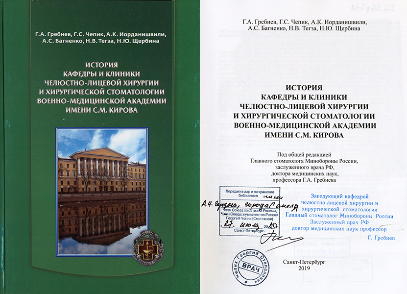 История кафедры и клиники челюстно-лицевой хирурги и хирургической стоматологии военно-медицинской академии имени С. М. Кирова / Г. А. Гребнев [и др.]. - Санкт-Петербург, 2019. - 143, [1] с.