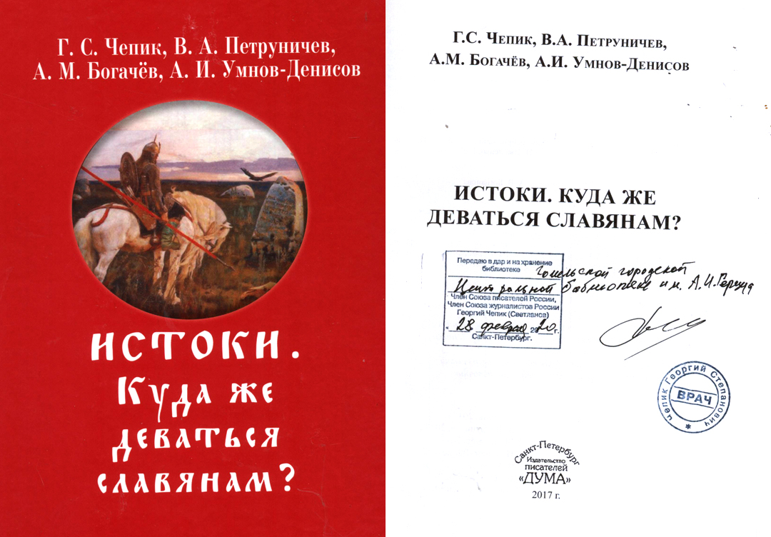 Чепик Г. Истоки. Куда же деваться славянам? / Георгий Чепик, Владимир Петруничев, Алексей Богачев и др. – Санкт-Петербург : Дума, 2017. – 224 с.