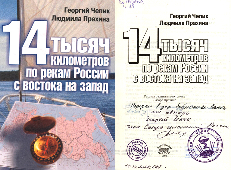 Чепик Г. 14 тысяч километров по рекам России с востока на запад : рассказ о капитане-яхтсмене Лазаре Прахине / Георгий Чепик, Людмила Прахина. – Санкт-Петербург : Дума, 2004. – 142 с.