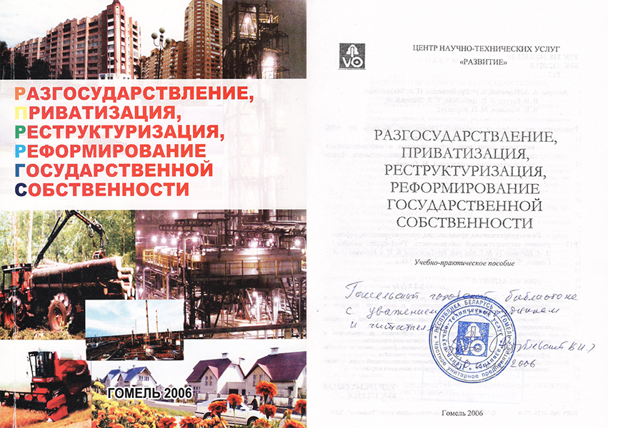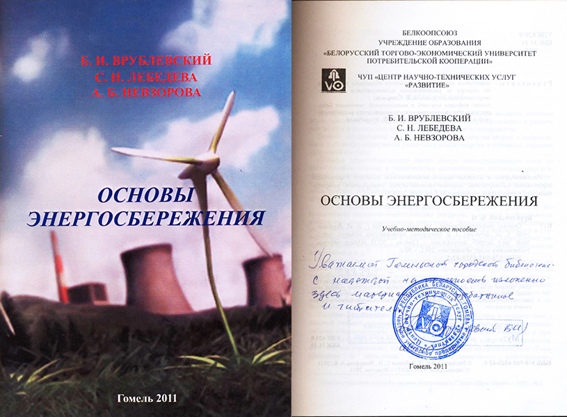 Уважаемой Гомельской городской библиотеке с надеждой на полезность изложенного здесь материала для работников и читателей. Подпись. (Врублевский Б.И.)