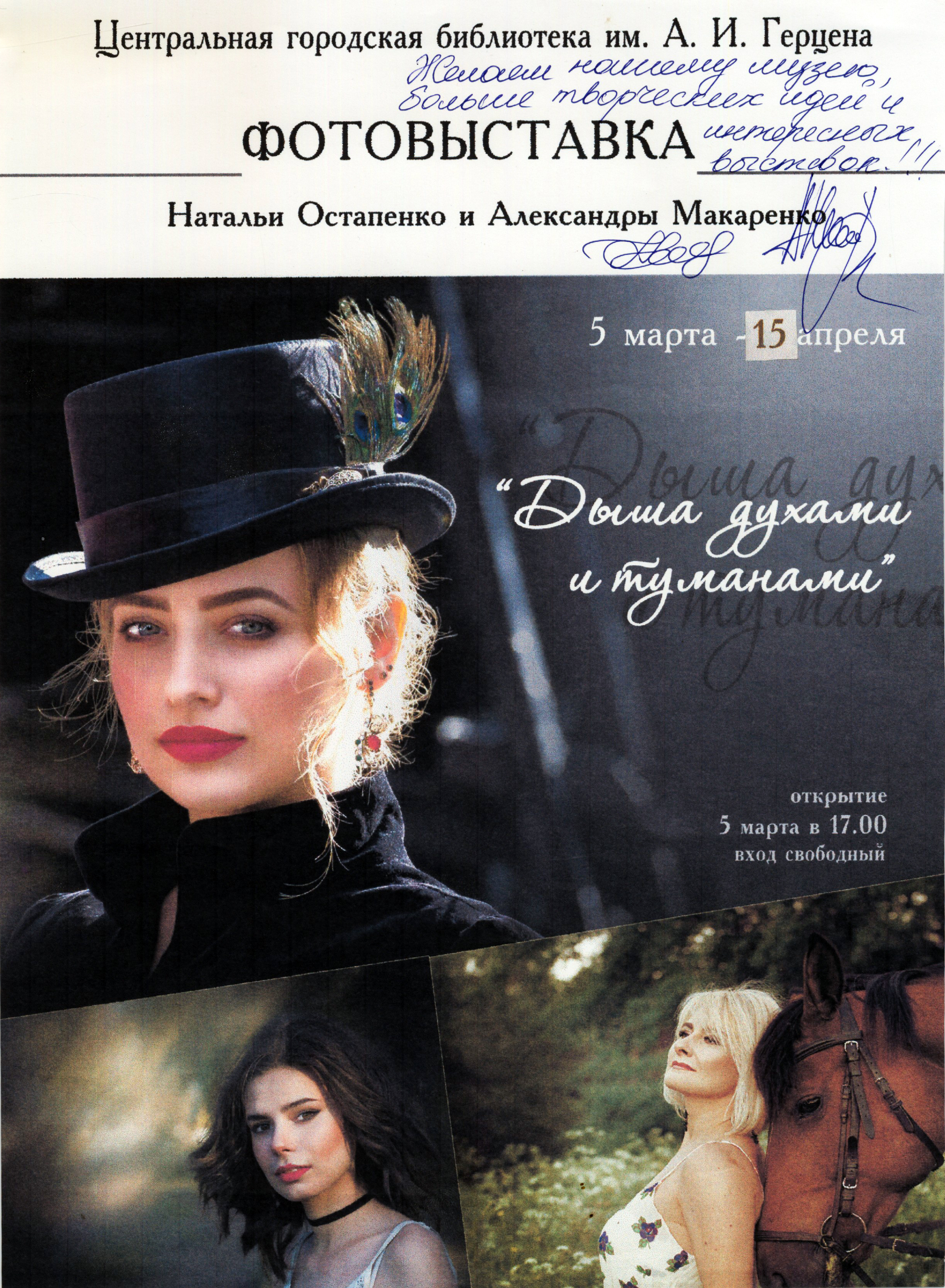 В 2020 году в музее автографа Центральной городской библиотеки им. А. И. Герцена состоялась совместная фотовыставка «Дыша духами и туманами» с Натальей Остапенко.